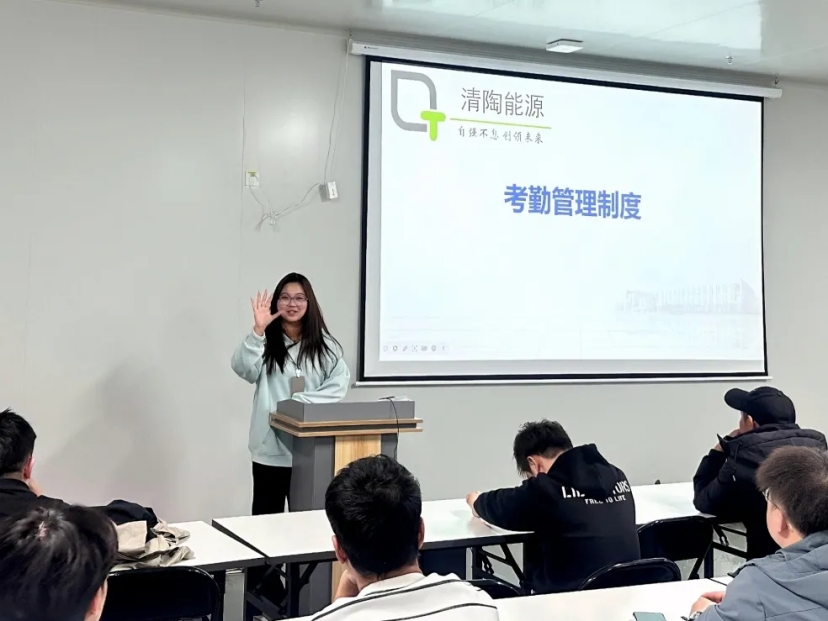 △苍雨鑫为员工讲解企业考勤制度