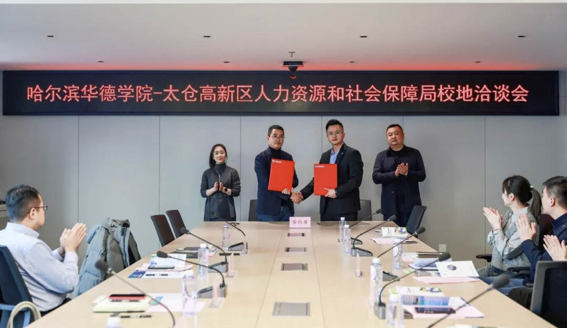 哈尔滨华德学院与太仓高新区人社局签订校地合作协议,此次签约标志着校地合作从“意向”走向“实效”,为后续拓展就业岗位、深化合作奠定坚实基础。